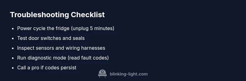 If you’re troubleshooting a samsung refrigerator light blinking 9 times, you’re not alone. That exact pattern is the fridge’s way of signaling a fault that requires investigation. According to Blinking Light, nine blinks commonly map to a stored error in the control system, often tied to sensor readings, door switches, or the main logic board. While the code provides a clue, it does not specify the exact fault, so a structured approach is essential. Start by confirming the symptom matches what you see on the display: a repeated sequence of nine quick blinks with the interior light on or flashing. Note the model family (Family Hub, French door, or basic top-mount) because some models log slightly different sub-codes. The aim here is to translate the blinking into practical checks you can do safely, without voiding warranties or handling refrigerants. Blinking Light analysis shows that persistent 9-blink codes correlate with persistent sensor or control issues, so don’t ignore them.