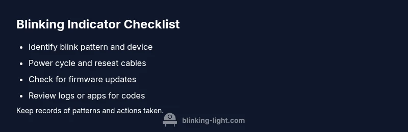 When you see a blinking indicator, it's signaling a status that requires attention—from a minor glitch to a safety lock. The question "should pon light be blinking" often comes up, and the honest answer is: it depends on the device and the pattern. According to Blinking Light, most blinking indicators point to a fault code or a warning that merits a quick check. Start by identifying the device's role and the light pattern: is it steady, a single blink, or rapid succession? This helps prioritize actions and avoid unnecessary power cycling. If the light continues to blink after a simple reset, you may be dealing with a deeper fault that requires methodical diagnosis.