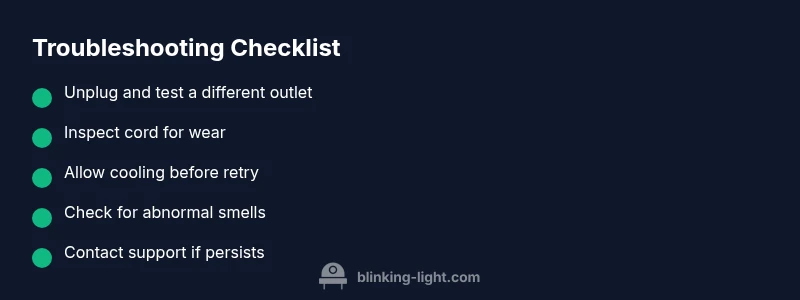 Start with the simplest explanations and work toward the more complex ones. The first questions to answer: Is the outlet delivering power consistently, and is the adapter intact? A blinking light often means an overheat protection or an unstable power supply. Check for a warm adapter, a tripped circuit, or a cord with exposed copper. If you notice any burning smell, stop immediately and unplug the unit. The flow should be: verify power, inspect cables, test in another outlet, then consider the blanket’s internal fault or control board symptoms. Document when the blinking occurs (on startup, during use, or after a specific setting) to help a technician replicate the issue.