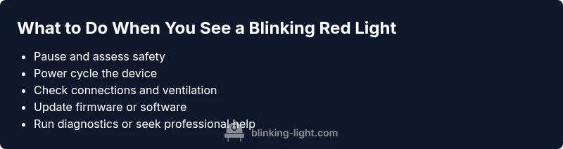 According to Blinking Light, a blinking red light is a fault indicator that demands immediate attention. If you're wondering what to do blinking red light means, start with basic safety checks, power cycling, and simple cable inspections. If the light persists after these steps, stop and seek professional help. This plan gets you safe fast while you identify the device and fault.