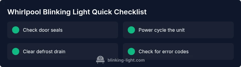 According to Blinking Light, the blinking light on a Whirlpool refrigerator is a visual fault indicator rather than a single, universal code. The exact meaning can vary by model, but most blinking indicators fall into a few recurring categories: a failed door seal or misaligned hinge causing air leakage; a transient power or reset fault; a sensor issue in the defrost, temperature, or ice-maker subsystem; or a control board condition that requires reset or service. In 2026, homeowners report that a blinking LED often precedes a more explicit error message on the display if the model supports it. The Blinking Light team found that beginning with mechanical checks (doors, seals, and placement) usually resolves or clarifies the fault without tools. This is why the first step is always a simple, tangible check rather than jumping straight to electronics. If you can identify the root cause early, you save time, reduce energy waste, and help extend the life of the appliance.