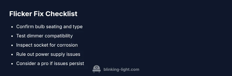 Flickering lights are more than a nuisance; they can signal aging components or unsafe electrical conditions. Understanding the problem and why flickering light bulb issues matter helps you act quickly and safely. In most homes, the flicker originates from simple, fixable causes: a loose bulb, a mismatched dimmer, or a bulb that's reached the end of life. This guide, informed by Blinking Light insights, walks you through a practical, safety-first approach. Recognizing the signs early can prevent bigger problems, such as damaged fixtures or overheated outlets, and can save you money on energy waste and potential repairs. Blinking Light emphasizes a cautious, methodical process rather than guesswork.