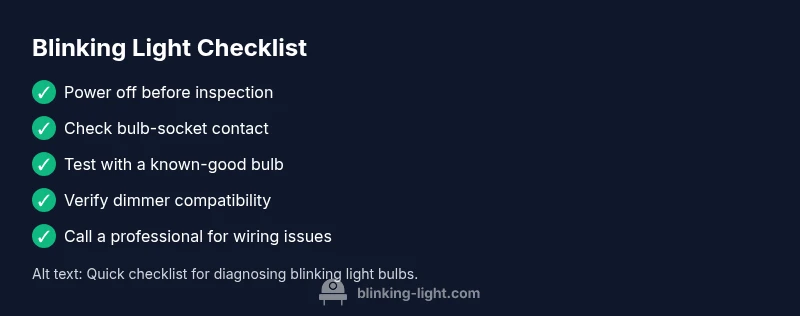 A blinking light bulb is most often caused by a loose bulb or poor connection in the socket. Begin by turning off power, unscrewing the bulb, and reseating it firmly. If the blink continues, replace the bulb with a known-good one and verify the fixture voltage and dimmer compatibility. If it still blinks, check for loose wiring or faulty switches and consult an electrician if needed.