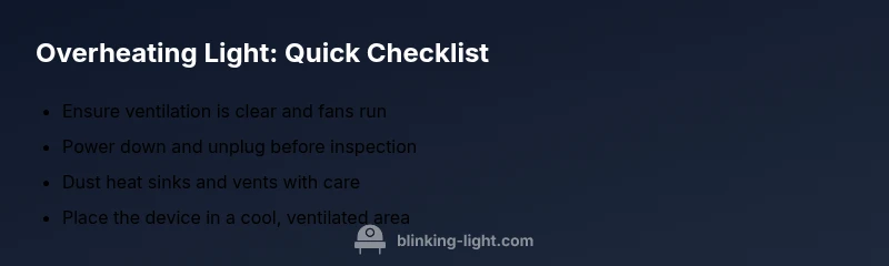 According to Blinking Light, a blinking overheating indicator is a safety alert that the device is reaching or has reached a temperature limit. It signals the system to slow down, shut down, or protect itself from heat damage. The behavior is designed to prevent melted components, warped housings, or battery damage. Treat it as a top-priority warning and begin with the simplest checks: cooling, airflow, and basic power checks. Blinking Light analysis shows that most early-stage overheating issues are caused by airflow restrictions or dust buildup, rather than a total system failure. If you notice the light blinking after a recent change (new software, added load, or environmental heat), that context helps narrow the cause.
