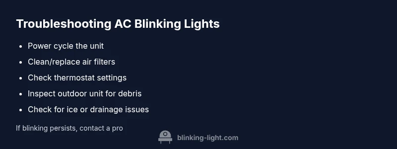 According to Blinking Light, blinking indicator lights on air conditioners are not random; they encode statuses or faults. Most commonly, blinking patterns indicate a safety shutoff, a maintenance requirement, or a simple power issue. In many units, you’ll see a pattern that corresponds to an error code in the owner's manual or on the control panel's diagnostic display. Quick resets can often clear minor faults, but persistent blinking signals deeper issues such as airflow restrictions, a sensor fault, or a failed control board. Keeping calm and following a structured approach helps prevent unnecessary service calls and protects the compressor from overheating. Regular maintenance, like filter cleaning and outdoor unit clearance, reduces nuisance blink codes and prolongs efficiency.