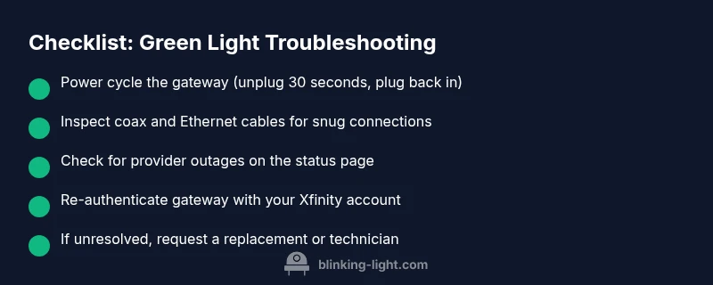 A green blinking light on your Xfinity gateway usually signals activity or a temporary connection issue. Start with a quick power cycle, then verify cables and service status. If the light keeps blinking after these steps, continue with the diagnostic flow and step-by-step fixes to restore reliable service.